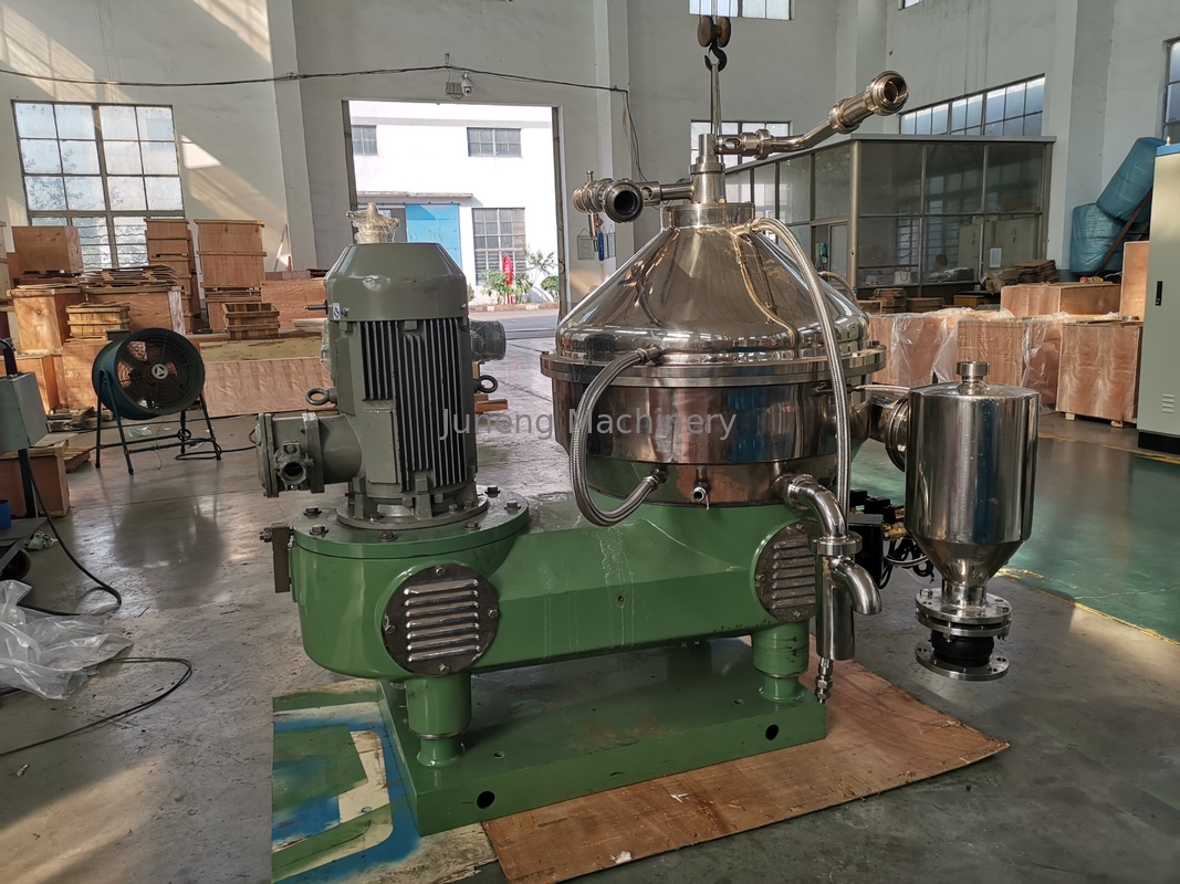 de separator van de schijfstapel scheidt vaste lichamen en één of twee vloeibare fasen van elkaar in één enkel continu proces, gebruikend uiterst hoge middelpuntvliedende krachten. Wanneer de dichtere vaste lichamen aan dergelijke krachten worden onderworpen, worden zij gedwongen naar buiten tegen de roterende kommuur, terwijl de minder dichte vloeibare fasen concentrische binnenlagen vormen. Het gebied waar deze twee verschillende vloeibare fasen samenkomen wordt genoemd de interfacepositie. Dit kan gemakkelijk worden gevarieerd om ervoor te zorgen dat de scheiding met maximumefficiency plaatsvindt. Het opnemen van speciale platen (de „schijfstapel“) verstrekt extra oppervlakte regelend gebied, dat tot dramatisch het versnellen van het scheidingsproces bijdraagt. Het is de bijzondere configuratie, de vorm en het ontwerp van deze platen die het voor een schijfstapel om te centrifugeren om de ononderbroken scheiding van een brede waaier van verschillende vaste lichamen van of één of twee vloeistoffen te ondernemen mogelijk maken. De geconcentreerde die vaste lichamenfase door de deeltjes wordt gevormd kan, afhankelijk van centrifugetype en de hoeveelheid vaste lichamen onophoudelijk, bij tussenpozen of manueel worden verwijderd betrokken bij de specifieke toepassing.
